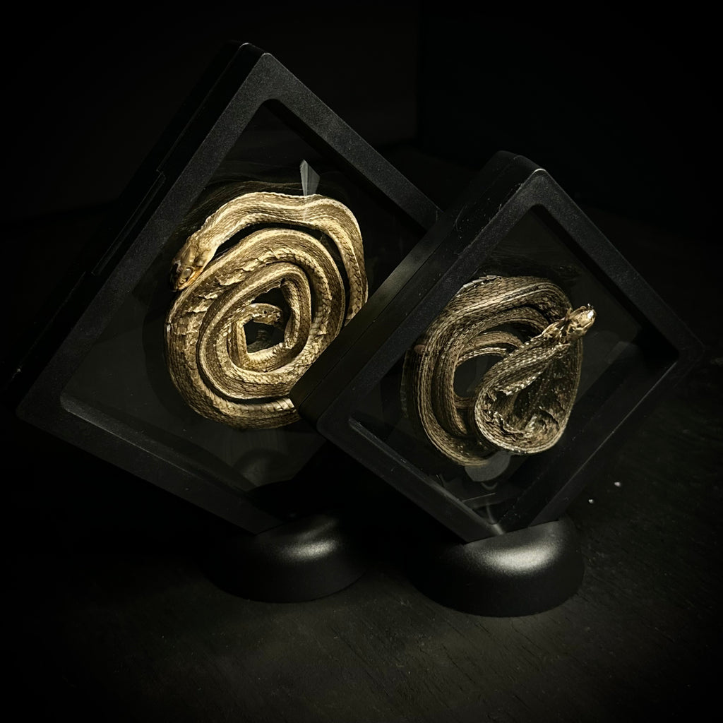 *Size and pose of the snakes will vary. Larger specimens are mounted in the 4" x 4" frame while slightly smaller specimens are mounted in the 3" x 3" frame. No two snakes are posed exactly alike.