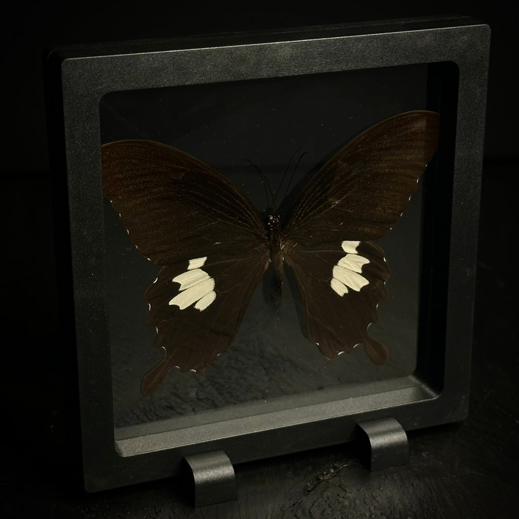 Real Red Helen butterfly dry preserved and mounted in a 5" X 5" plastic frame with stand.
