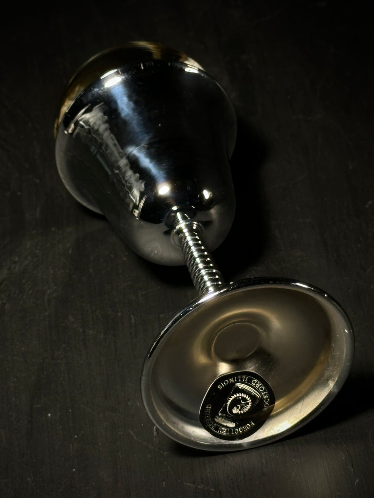 Real bearded dragon preserved in fluid and sealed inside of a 2" glass globe with a vintage silverplate goblet base.